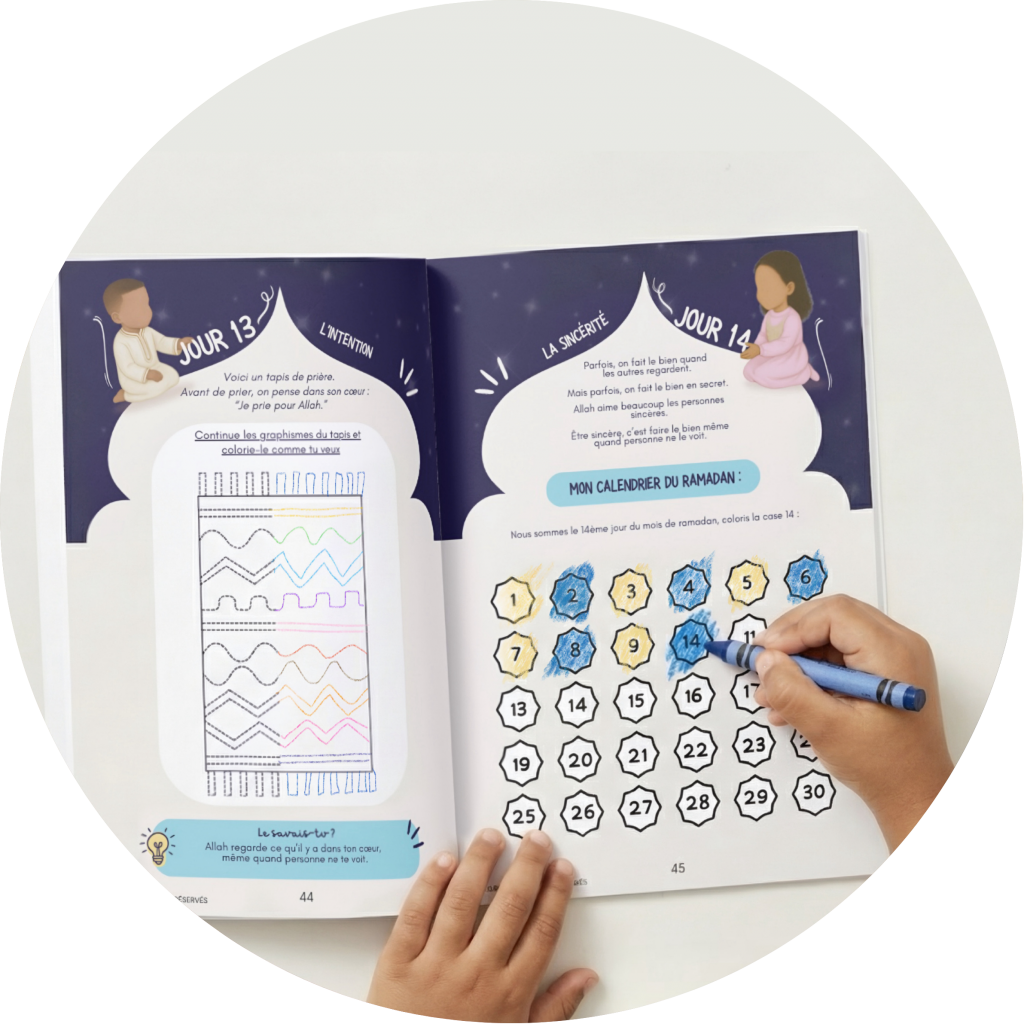 Jour après jour, il aide les enfants à comprendre, vivre et aimer le Ramadan à travers des activités éducatives, ludiques et bienveillantes, adaptées aux 3 à 8 ans.